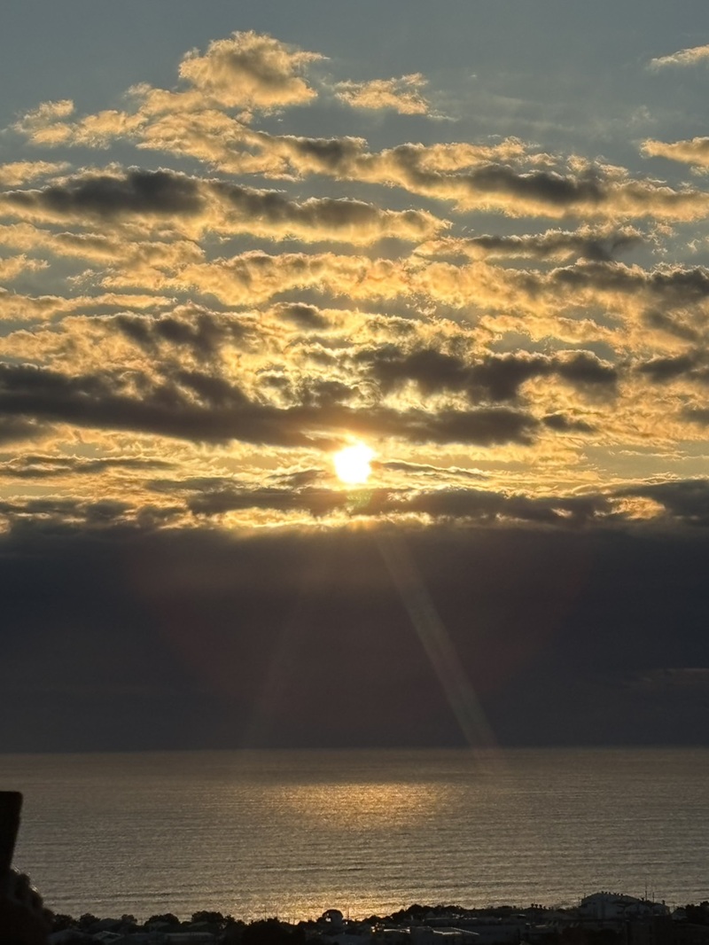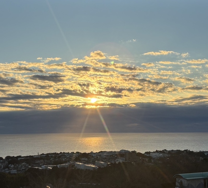 5階展望カフェからの初日の出をお届けします。雲が厚く日の出まで時間がかかりましたが、神々しい朝日を拝むことが出来、