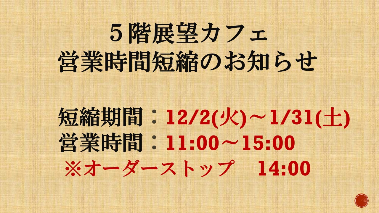 ~展望カフェ営業時間短縮のお知らせ~